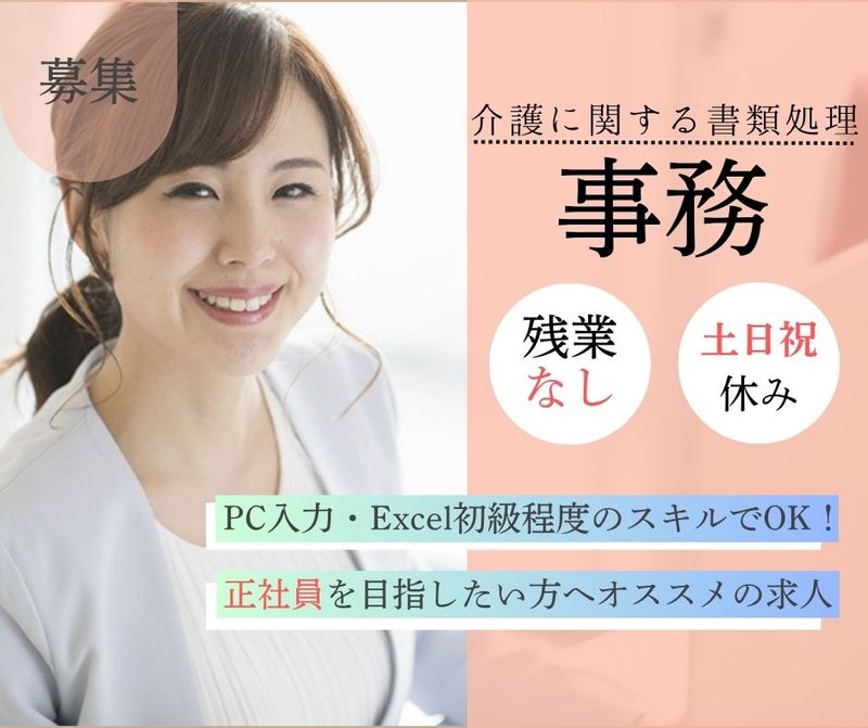 メッセージ \介護関係の事務のお仕事/ 将来的に、正社員になれる可能性があります★ 正社員を目指したい、 キャリアアップしたい方におすすめ◎ 土日祝休みで残業ほぼなしなので プライベートも充実◎ 事務未経験の方でも大丈夫です! 経理経験・簿記資格ある方は大歓迎! 今までの知見を活かせますよ。 介護業界に興味のある方、 働き方を見直してプライベートを大切にしたい方は ぜひご応募ください! 未経験者歓迎! 定時帰社×完全土日祝休みで プライベート充実♪残業基本ナシ◎ 20代~40代女性活躍中◎ 労働者派遣事業((派)21-300135) 職業紹介事業(21-ユ-010036)