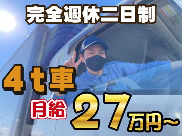 【4t車ルート配送】未経験OK! 福利厚生充実・賞与あり 資格取得制度あり・髪色自由・ひげOK