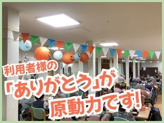 PR POINT1アットホームな介護施設で働きやすい職場 デイサービスをメインとした介護施設での施設管理事務となります。 をお願いします。 POINT2日勤のみ 残業ほぼなし 家庭との両立もしやすい環境です。 未経験者もしっかりサポートしますので、長く働ける環境です。 終わりは16時で残業も少なめ、家事との両立可能で働くママさんも安心して働けます。 「以前、介護の仕事をしていた 」などのブランクのある方も歓迎です POINT3この職場の好きなところエピソード ご利用者様の参加型ワークショップで書いてもらった絵を天井に飾り付けをする企画を提案・実施しました。 自分が書いた絵を施設に飾ってもらうことで、とてもご利用者様に喜んでもらえた経験があります。 自分がやった方が良いと思えることは、経験・年齢関係なく提案できることがやりがいに繋がっています。