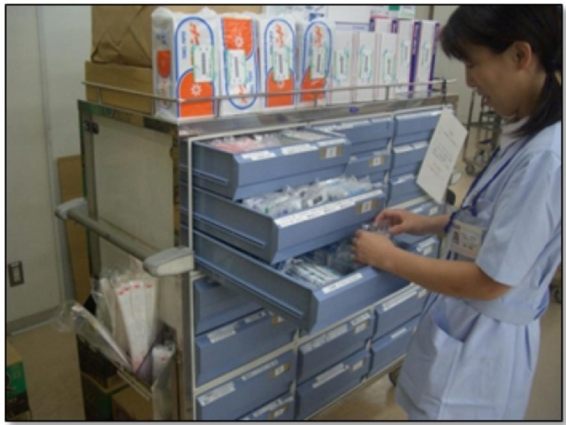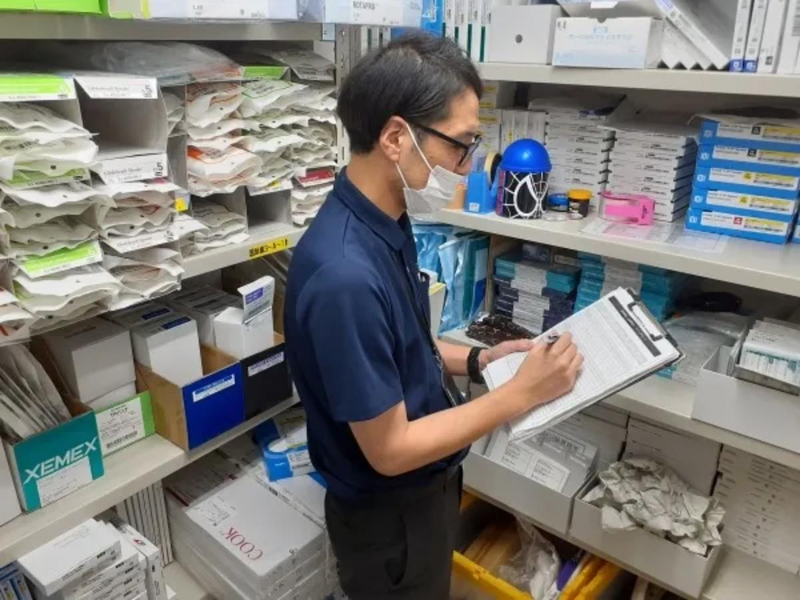 中村日赤病院内での医療材料倉庫内(手術室)の物品管理