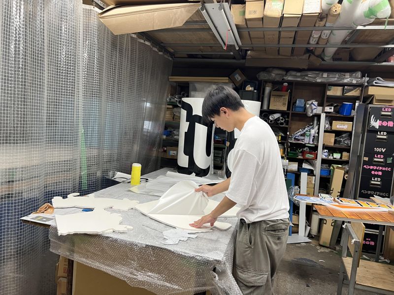 仕事内容 全てがオーダーメイドの「看板」作り。 毎回違うものを扱うので、毎日が新鮮! 学ぶことも多いのが面白い。 有名チェーン店や飲食店等からの依頼も多く業績は好調。 扱うのは片手サイズのものから、ビルの壁一面の大きさのものまで様々。 看板の意図や種類によって手法や工程も異なります。 看板以外にも、遊園地などのイベント装飾やお店の内装の依頼も。 誰もが知っているキャラクターのパネルなども手がけます! 当社は自主性を重視するスタイル。 『どうしたらもっと良いものが作れるか』 日々、考えながら楽しみながら、モノづくりができる環境で働いてみませんか。 ・・――――――――・・ 具体的な仕事内容 ・・――――――――・・ 実は具体的な仕事内容を訊かれると少し困ってしまいます。 それは弊社の仕事は一括りに言うことが出来ないからです。 「看板制作」は簡単に言うと、 会社内で看板の土台になるものを加工したり、LEDライトを組みこんだり、板をカットしたり、塗装をしたり、シートを貼り込んだり・・・などなど。 上記のような工程を組み合わせて看板は作られています。 看板は、種類や大きさ、取付場所などによって制作方法が変化するため、依頼されたものによって工程が変わっていくからです。 そして、最後に様々な工程を経て完成した看板を現場へ運び、取付、施工をします。 一概には言えない部分もある弊社の仕事内容ですが、毎日違う仕事ができるのは魅力の一つだと思っています。 図画工作やモノづくりが好きな方はもちろん、自分で考えて動くことが好きな方、飽き性な方も楽しみながら仕事ができます。 また、看板制作以外にも、某遊園地内で行われるアニメ、ゲーム等のコラボイベントの仕事があり、有名なキャラクターの等身大パネルやフォトスポットパネルなども制作しています。 自分が知っている作品のイベントだと仕事のやる気も上がります! ・・――――――――・・ 入社後からの流れ ・・――――――――・・ まずは会社内で、看板や材料の種類、工具の名前をなどを覚えながら、事務所の清掃や看板のLED配置などの簡単な作業から初めていただきます。 慣れてきたら、簡単な塗装作業や枠作りなどを徐々に実務に取り組んでいただきます。 コツなどはしっかりとお伝えしますのでご安心ください。 会社内で大体ひと通りの作業を覚えたら、半年ほどで取付アシスタントとして現場に同行してもらいます。 現場は複合商業施設、大手飲食店、スーパー、カラオケ店、パチンコ店、有名ブランド店など。 (閉店後、開店前の店内や、まだオープンしていないお店の裏側が見れて少し面白いです) 取付業務は1日1か所程度、1現場2~4名体制で行います。 会社に集合してから現場に向かい、先輩たちに教えてもらいながら看板の取付方法を学んでいきます。 仕事はやる気・適正・能力に合わせ、徐々にお任せしていきます。 取付作業は力仕事もあり大変な部分もありますが、看板がないとお店は完成しません。 看板はお店にとっても重要な存在であり、その取付は看板屋のメインともいえる大事業務です。 そのため、取付が無事完了したら達成感を感じられますし、店舗の方から感謝されることがやりがいとなっております。 ・・――――――――・・ 職場環境について ・・――――――――・・ 全5名在籍/男性3名:女性2名 少数精鋭でスタッフの職種を問わず、協力しあいながら働いています。 DIY好きなスタッフも多数活躍中! スキマ時間や休みの日に余った資材を利用して プライベート用のイスや棚などをDIYするスタッフも! デザインやカタチなど様々なものを扱うため 日々、学びながらモノづくりができる環境です。 <社長より> 当社は「従業員自身に任せる」スタイルを大切にしています。自分で考えて行動するからこそ成長でき、ヤリガイを感じられると考えております。納得のいく作品が作れるようになるまでは、覚える事が沢山ありますが、しっかりサポートします。 今後、当社が新しいことに挑戦していくためにも、新しい仲間を募集します。 <担当者より> 新しいことに挑戦するために、あなたが必要です。「忙しくて手が回らない」「しょうがない」ではなく、「どうしたら出来るか」と前向きに考えて行動して欲しいと思います。出来ない事を出来ないと認める事も大切です。仕事に対して誠実な方に来ていただきたいと思います。