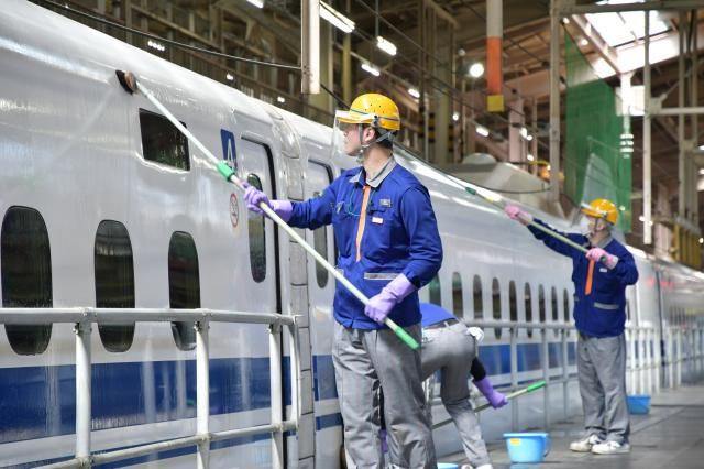 募集要項 職種 新幹線車両のクリーンスタッフ 雇用形態 契約社員 仕事内容 新幹線全体の清掃・整備をお任せします。 車両基地での作業なので、お客様と関わることはありません。 作業時間は1回40~55分、1人1両を担当します。 車両基地は終点まで運行を終えた新幹線を迎え入れ、また次の出発に向けた準備をする場所。作業のために普段では近づけない距離感や目線で新幹線に触れることができます。そして、自分たちが磨きあげたピカピカの新幹線が、日本の大動脈として活躍する。その姿に、誇らしさを感じられる仕事でもあります。 ※作業するのは1日に7~8本ほど 作業量が多いので体力的に不安…という方もご安心ください。一気に作業をこなすわけではないので2~3本やってから昼休憩や1本やって待機時間を挟む場合もあります。 <車内整備> ▼座席回りのゴミ回収 ▼座席の転換 ▼背もたれのカバー拭き ▼座席のほうき掛け ▼肘掛のクロス拭き ▼床面のモップ掛け ▼車内のトイレや洗面台の清掃 など <車外・下回り整備> ▼車体や窓のクリーンアップ ▼車内から出たゴミの搬送 ▼車両への給水 ▼トイレタンクの汚物抜き取り ※床下のトイレタンクに専用のパイプを取付けて作業するため、直接人目に触れずに処理が完了します。