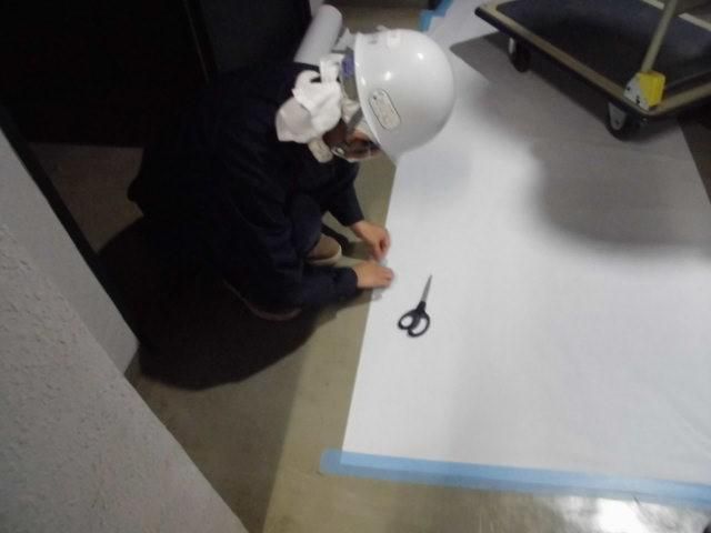 建築現場での養生スタッフ