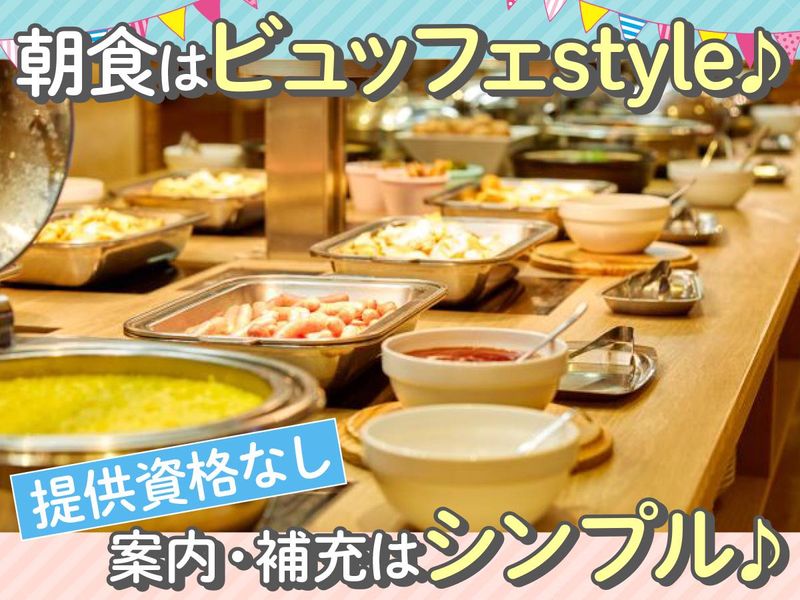 仕事内容 *ー・ー*ー・ー*ー・ー*ー・ー* ✨1日4時間だけ♪週2日~OK✨ ✨未経験からスタートした方多数✨ ✨土日祝だけでも大歓迎✨ ✨自転車通勤OKで通いやすい✨ *ー・ー*ー・ー*ー・ー*ー・ー* ╲浦安ベイサイドの南国風レストラン╱ 制服もアロハスタイルで気分はリゾート♪ アミューズメントパークや 観光利用のお客様が多数! 明るくにぎやかな雰囲気でお仕事◎ 【お仕事内容】 ホテル内の朝食ビュッフェレストランでの ホール業務をお任せします! ⏩お客様のご案内 ⏩料理の補充 ⏩テーブルの片付け・セッティング ★未経験でも始めやすい! オーダーを取り続けるような 忙しさはなく、 流れが決まっているので 未経験の方でも安心です♪ ★シンプル+ルーティン作業! ご案内→食器を下げる→テーブルを整える というシンプルな繰り返しが中心です 最初は先輩スタッフと一緒に 働きながら覚えていきます! いきなり、一人で任せることはありません ★お客様の滞在時間は比較的短め! テキパキ動くことはありますが、 慣れてくると、リズムよく スムーズに進められます☆ 【1日の流れの例】 06:30⏰出勤・準備(担当エリアを確認) 07:10⏰お客様のご案内、料理の補充 09:30⏰食器の片付け、テーブル整備 10:30⏰店内の片付け・簡単な清掃 11:00⏰お仕事終了 午後は自由時間♪ 短時間でも「働いた実感」があり、 授業や予定の前に無理なく働けます✨