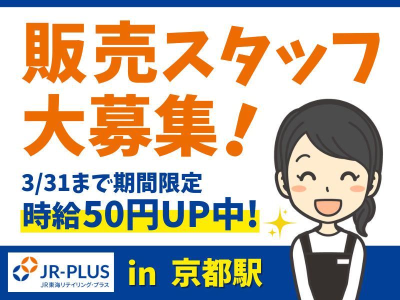 仕事内容 ‥‥JR東海グループの安心ポイント‥‥ 【1】嬉しい待遇▶新幹線補助制度あり 旅行や推しのイベントなど、 プライベートでご利用いただけますよ! 京都駅内でのお仕事なので、 早番で働いてそのまま新幹線で移動 なんてシフト相談もお気軽に♪ 【2】期間限定!時給UP中! 3/31まで限定、時給50円UP! 仕事内容や勤務時間はそのまま◎ この期間だけ特別なお仕事をしてもらう なんてことはありません! ぜひこのチャンスにご応募ください! 【3】自分時間をたっぷり確保! 午前から or 午後から、 私生活やご都合に合わせて 勤務開始時間の選択が可能です◎ 学校や勉強が終わってから、 フルタイムでガッツリ!など 予定に合わせて働けます! ‥‥‥‥‥‥‥‥‥‥‥‥‥‥‥‥‥‥ <仕事内容> 京都駅内のショップで 販売・商品補充等のお仕事をお任せします。 難しい仕事は無く研修もあるので、 未経験の方も安心してスタートできますよ◎ ※複数店舗があり各売店でのお仕事です ◆働くスタッフの声  ̄ ̄ ̄ ̄ ̄ ̄ ̄ ̄ ̄ 【主婦スタッフ Aさん】 京都駅の中でお仕事なので 通勤がとっても便利です。 早朝から勤務していますが、 勤務後も自分の時間がしっかりあるので ついでに用事を済ませたり 買い物などもできて便利です◎ 【フリーターBさん】 他にもバイトをかけもちしています。 無理のないシフトで勤務させてもらえて うまく両立できています。 Wワーカーの方にぴったりのお仕事です◎ 他のスタッフの方も幅広い年代の方がいて いろいろな話が出来て楽しいです♪ 【雇用形態】 アルバイト・パート