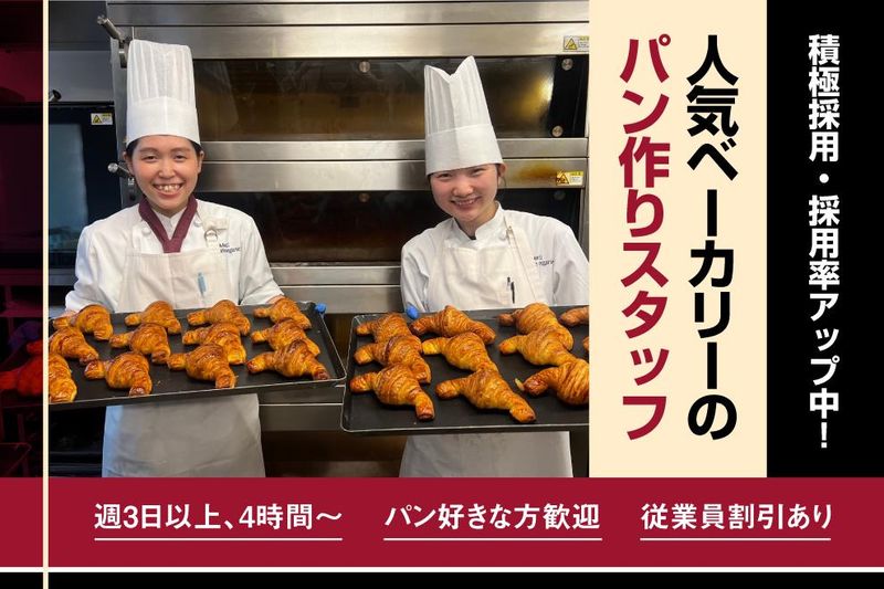 仕事内容 \ アピールポイント / ◎2025年5月にオープンしたばかりのパン製造工場です! ◎有機小麦粉、自家製酵母など自然由来な安心して食べられる人気のパン屋 ◎パン職人として豊富な経験を持つ「ワタナベ マサル」がオーナーシェフ☆ ◎週3日、4時間/日以上!昇給年2回、従業員割引もあり良待遇♪ \ 主婦(夫)さん大歓迎 / 「早起きが得意だから、朝活に」 「子育ても落ち着いたから、朝イチを活用したい」 「子供が学校から帰る夕方までで相談したい」 「オシャレなベーカリーで働くのが憧れだったから、フルタイムで」 「働きながら趣味のパン(お菓子)作りの腕を磨きたい」 …みんな応募のきっかけは様々! 働き方はお気軽にご相談ください。 \ 仕事内容 / 当社が運営するリテールベーカリー 『Merci life organics(メルシーライフオーガニックス)』で 自家製酵母を使用したパンの製造をお任せします。 ■製造スタッフの一日の流れ(6時出勤、フルタイムの場合) 06:00~07:00 生地作り 07:00~07:30 成形 07:30~09:30 発酵 09:30~10:00 焼き 10:00~11:00 休憩 11:00~13:00 売れ筋商品をメインに「生地作り」~「焼き」を繰り返す 13:00~15:00 翌日の仕込み・新商品の試作など \ スタッフの負担軽減に注力 / 高いモチベーションでこだわりの パンを提供し続けるため、パン作り 以外の業務は別のスタッフが担当し、 業務に集中できる環境を創出。 また通常業務はもちろん、メニュー開発 なども業務時間内に完結させるため残業は ほぼなく、休日にメニュー考案に追われる こともありません。 心身ともに負担の少ない環境を創り、 安心して働ける職場を目指しています。