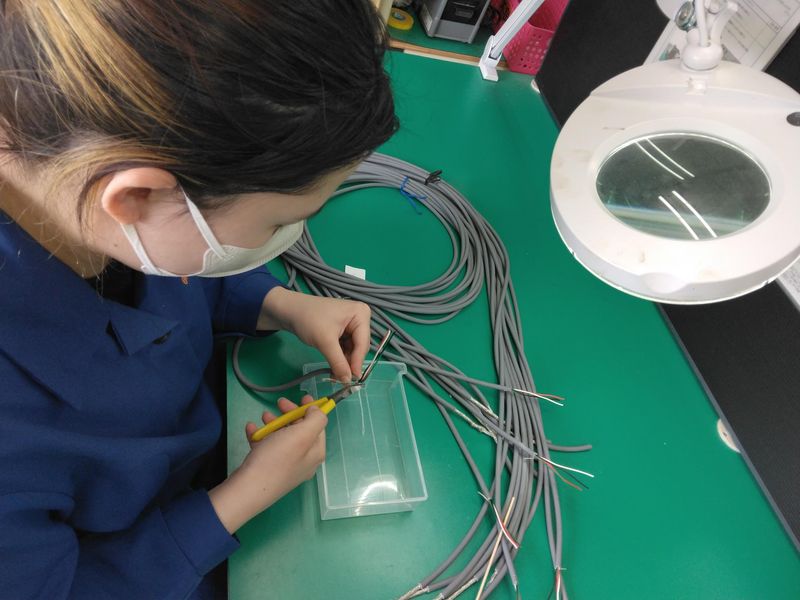 工場でのハ-ネス組立補助.半田付け