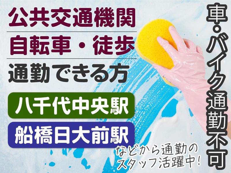 求めている人材 \シニア応援♪/ 定年後のお仕事に! セカンドライフのスタートに◎ ●未経験歓迎 ●60歳以上のシニア歓迎! ●ブランク可 ●扶養内勤務OK ●WワークOK ★地元の⽅が活躍中! ⼋千代緑が丘駅や船橋⽇⼤前駅、北習志野駅、⼋千代中央駅付近など <こんな方、歓迎します!> ●清掃スタッフ・清掃員の経験がある方 (駅清掃、オフィス清掃、商業施設清掃、学校清掃、病院清掃、ビル清掃、室内清掃、簡単清掃、軽作業、日常清掃など) ●掃除が好き・キレイ好きな方 ●黙々と集中して行う作業が好きな方