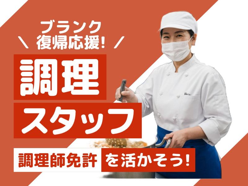 求めている人材 要調理師免許! 経験年数不問・学歴不問・年齢不問 \大歓迎/ ★施設調理、大量調理の経験のある方! ◇主婦(夫)歓迎! ◇シニア応援! ◇フリーター歓迎! ◇久々の仕事復帰という方もお気軽に! 「家が近くて通勤しやすいから」 そんな理由から始めた方も多数いらっしゃいます!