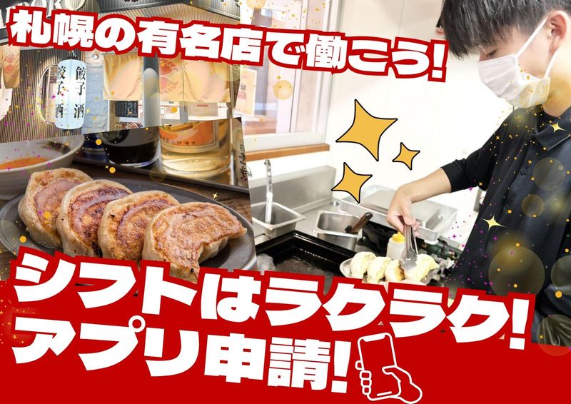 仕事内容 / 札幌で大人気! 行列ができる駅チカ餃子専門店での キッチンスタッフ募集! \ お任せするのは、 餃子の焼き作業や盛り付け、 簡単な仕込みなどのキッチン業務。 まずは簡単な作業からスタートするので、 未経験でもまったく問題なし◎ レシピや手順はしっかり決まっていて、 先輩が横について教えます! 最初は 「盛り付けをする」 「焼き上がりをチェックする」 など、できることからでOK♪ 慣れてきたら、 調理のコツやスピード感も身について、 「自分が焼いた餃子が出ていく」やりがいも感じられます! スタッフ同士の距離も近く、 声を掛け合いながら働くあたたかい雰囲気。 「気づいたら仲良くなってた!」 そんな職場です。 お客様にもスタッフにも 「このお店でよかった」と思ってもらえる、 そんなお店を一緒につくりましょう!