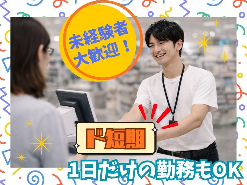 仕事内容 ⭐…⭐…⭐…⭐…⭐…⭐…⭐…⭐ \\ 4/28(火)・29(水)・30(木) // GW前に短期バイトでお小遣いGET! ⭐…⭐…⭐…⭐…⭐…⭐…⭐…⭐ ショッピングモール内のポップアップストアで運営業務☆ ✅商品説明 ✅レジ対応 ✅商品の補充・陳列 ✅お客様対応や声掛け などをお任せ!たのしみながらばっちり稼げちゃうお仕事です♪ 未経験者も、接客販売の経験がある人も大歓迎!! 「イベント好き」「人と接するのが好き」 という人におすすめです★ ■当日の服装■ ・黒パンツ ・トップスはシンプルなもの ・スニーカー ■持参品■ ・腕時計 ・ペン ・メモ帳 ※キャラクターものの着用はご遠慮ください。 ※ジャージ・スウェット・ジーンズはご遠慮ください。 ※明るい色の染髪やアクセサリー類の着用はご遠慮ください。 ※選考あり ※雇用契約は株式会社ヒューマン・クリエイトと結ばれますが、業務は請負先企業の施設で行われます。