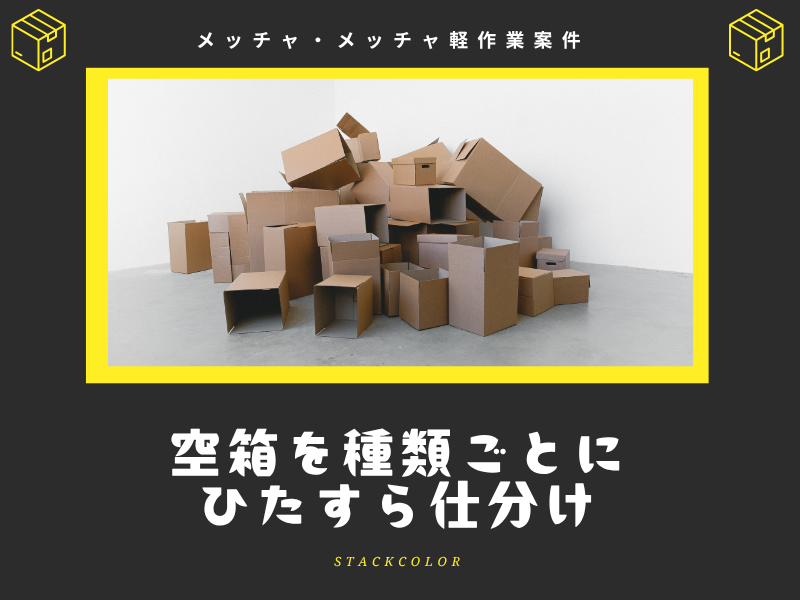 仕事内容 お急ぎの方はこちらにお電話ください! ▶090-6594-9375(担当携帯) SMSでの問い合わせもOKです◎ 自動車部品を入れる空箱を種類ごとにひたすら仕分ける作業デス。 空箱パズルに挑戦!ゲーム感覚で仕分け作業を楽しむも良し! また、箱探しゲームみたいな感じで業務を楽しむのも良し!!単純作業で集中力UP! ━─━─━─━─━─━─━─━─ メッチャ・メッチャ軽作業案件 ━─━─━─━─━─━─━─━─ こんな、軽作業でいいの?と思いですよね!? イイんです!!!超軽作業の案件は今だけです!! 「空箱バンザイ!仕分け作業でストレス発散!」 「モクモク作業OK!空箱仕分けでストレスフリー」
