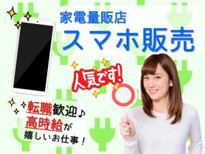 仕事内容 家電量販店携帯スマホ接客販売業務 接客や販売の仕事を通じて、徐々にコミュニケーション力や提案力も向上していきます。 【主なお仕事内容】 *商品 ・サービス・料金プランのご案内 *新規契約・機種変更・故障受付 *お店のディスプレイやポップ作り *イベント企画・運営など ◎一人一人にピッタリの料金プランをコーディネート◎ 携帯電話はお客様の生活インフラ。 ご来店された方のお話をしっかりとヒアリングして、機種や料金プランをご提案してください。 未経験の方も安心スタート!携帯業界や商品については最初にしっかり研修します。 実際に接客を始める時も、先輩と一緒だから安心です。 頑張った分はしっかり評価!お仕事は少しずつ、段階を踏んで覚えて頂きます。 携帯販売における業務全般に携わっていただきます。 販売業の中でも覚えることが多く大変とされる携帯販売ですが、 接客スキルはもちろん、事務作業なども身に付き、ご自身のスキルアップにつながること間違いなし!! 大きくステップアップできます! 気になることなどあればお気軽にご相談ください。 [こんな人が活躍] 20~30代の方活躍中!