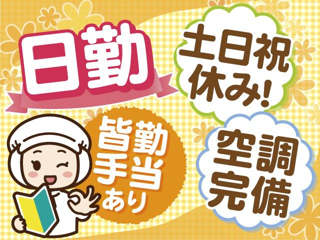 【日勤専属】土日祝休み&残業ほぼなし! 未経験も大歓迎!ロッカー&更衣室完備だから安心!