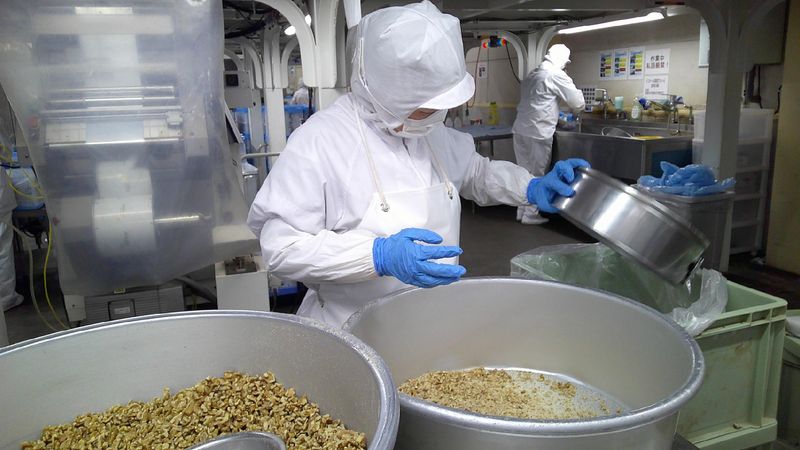 ナッツを扱う工場での原料選別