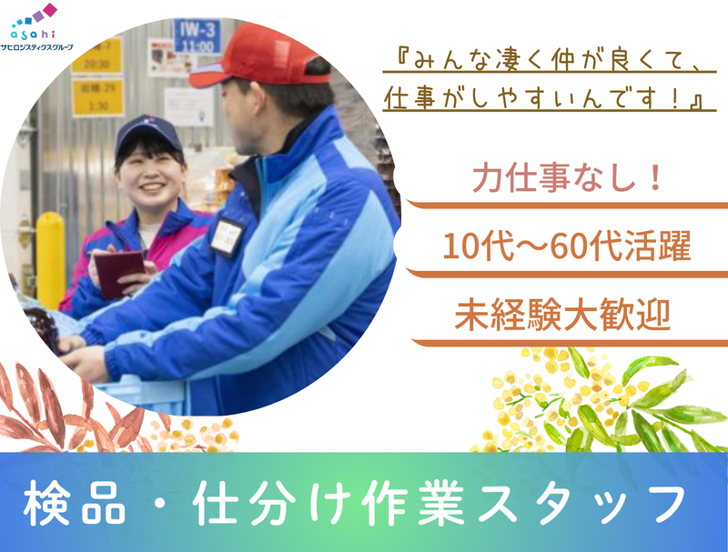 仕事内容 ┌─── \おすすめPOINT/ ───┐ ✅14時〜19時の間勤務できる方募集! 週3日〜なのでWワーク・副業も大歓迎! ✅『朝は家族のことに集中したい』、 『扶養内で働きたい』など考えて いる人におすすめなお仕事! ✅難しい作業はなくコンビニでよくみる 商品の検品や仕分け作業なのでシンプル。 覚えやすく楽なお仕事です! ✅26年2月OPEN! 出来たばかり物流センターだから きれいな環境で作業できます! ✅10代〜50代まで活躍中! 10代・20代の大学生や専門学生、 30代・40代の主婦(夫)さんなど 幅広い年齢のスタッフが働いています! 年齢関係なく、働けるのが魅力です! └─────────────────┘ <具体的には、、、> 大手コンビニなどで並んでいる 惣菜・サンドイッチなどのチルド商品、 米飯商品(おにぎり・弁当)の検品作業や 商品を仕分けるシンプルなお仕事です! 重いものも少なく、 年齢関係なく働ける環境なんです◎ 『未経験だから不安,,,』 『シフトの融通効くのかな,,,』など 働くにあたって不安な部分は解消できます! 様々なスタッフがいるので、 みんなで助け合いながら 一緒にがんばりませんか?