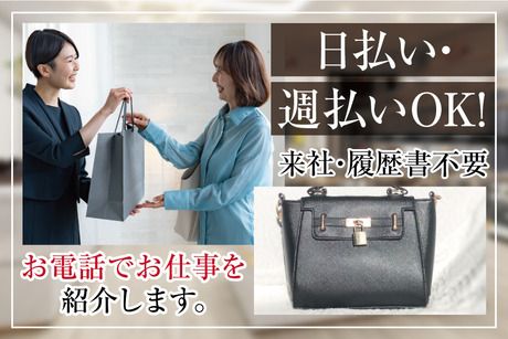仕事内容 ■大人気海外ブランドショップでの接客・販売をお任せします。 ファッションからグルメまで様々なショップが 立ち並ぶアウトレットパークで、 有名海外ブランドアイテムの販売をお願いします。 <具体的には…> ・お客様の接客 ・販売 ・商品管理 ・ディスプレイ ・顧客管理 ・その他付随する業務 など ウエアやバッグ・アイウエアまで。 いくつかの海外ブランドショップから 希望のお店を選択していただきます。 アウトレットパーク内のショップなので、 幅広い層のお客様が来店されます。 通常のショップでは味わえない接客の楽しさがありますよ♪ ■ファッションやオシャレが好きな方!未経験・ブランク歓迎◎ 販売・接客のお仕事に興味がある方なら 経験なくても大歓迎☆ お客様へのお声掛けの仕方からレジの使い方まで しっかり順を追ってお教えします◎ 困ったことがあれば先輩スタッフが しっかりサポートするので安心ですよ! まずは明るく丁寧な対応ができればOK! できることを少しずつ増やしていってください♪ ネイルや髪色もある程度は自由ですが、 お店のイメージを崩さないために規定があるので それは守って下さいね。 あなたらしさを出して働いていただけます◎ ■週4日~相談OK♪20~40代の男女スタッフ活躍中! 「週4日でほどほどに」 「週5日でしっかり稼ぎたい」 など、あなたの希望に合った働き方が可能ですよ♪ 週3日や時短勤務希望の方はご相談ください。 20代~40代男女が活躍中! 正社員登用のチャンスもあるので、 腰を据えて長期で活躍したい方にもピッタリ◎ ■来社&履歴書不要!電話でお仕事のご紹介が可能です。 今回募集しているお仕事に関して もっと詳しく説明してほしいと思われた方には、お電話でしっかり説明します。 来社&履歴書不要でお仕事のご案内が可能なので 仕事が休みの日や仕事終わりなど、 あなたの都合のよいタイミングで連絡いただければ希望のお仕事を案内しますので まずはご応募ください。