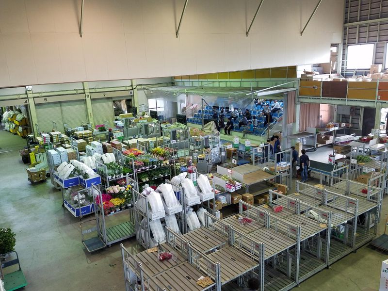 花の卸売市場内でのお花の配送・仕分け作業