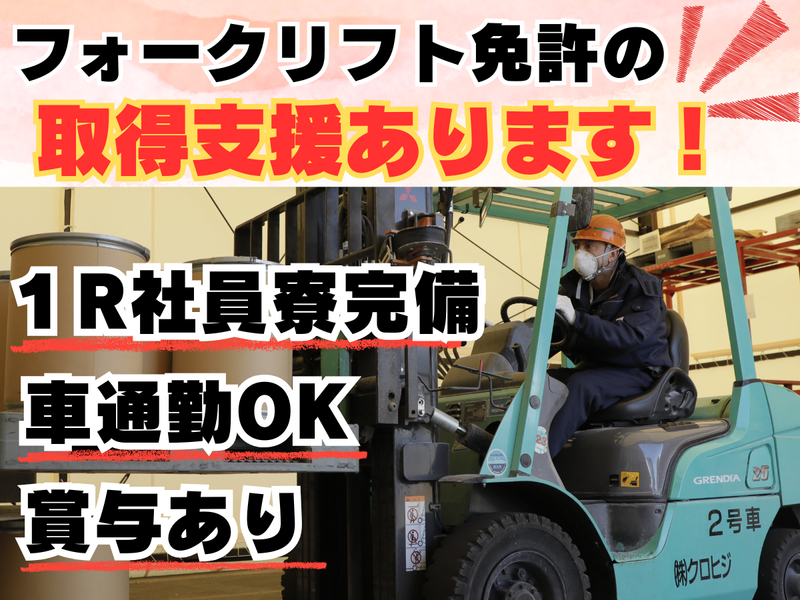 仕事内容 ✅安定の正社員雇用 ✅書類選考なし ✅賞与年2回あり ✅基本的に力作業ナシ ✅職場から徒歩5分の寮完備 \30代〜50代の男性活躍中!/ ================= 3~4人のチームでのお仕事 見守りや入力作業などがメイン ================= プラスチック製品を扱う工場での勤務です。 自動包装機がメインで動いており、 作業はサポート的なポジション。 ▼具体的には… ・機械が正常に動いているかチェック(モニター確認) ・データ入力(フォーマットに沿って数値などを入力) ・出来上がった製品の目視チェック ・清掃や簡単なメンテナンス作業 ※重いものを運ぶような力作業は、基本ありません。 製品の銘柄が切り替わるタイミングでは、 機械を一度止めて、目視検査や 清掃などの対応をお願いします。 作業内容は決まっているため、 未経験の方でもすぐに慣れます。 ✨スキルもキャリアも、クロヒジでつくる  ̄ ̄ ̄ ̄ ̄ ̄ ̄ ̄ ̄ ̄ ̄ ̄ ̄ ̄ ̄ ̄ ̄ ̄ ̄ ̄ ■フォークリフト免許の取得支援あり◎ ■資格取得は会社が全面バックアップ! ■年2回の賞与(7月・12月) また、適性やスキル、希望に応じて 将来的に他部署へチャレンジする道もあります。 社員一人ひとりが活躍できる場を、 一緒に考えていく会社です。 ✨協力しながら、ちゃんと休める  ̄ ̄ ̄ ̄ ̄ ̄ ̄ ̄ ̄ ̄ ̄ ̄ ̄ ̄ ̄ ̄ シフトは毎月、メンバー同士で話し合って決定◎ 無理に押しつけることはなく、 「ここ連休とれるけど、どうする?」 「今度ここ休みにしたいです」など ちゃんと相談し合える環境です。 ✨配属先について  ̄ ̄ ̄ ̄ ̄ ̄ ̄ ̄ ̄ ̄ ̄ ̄ ̄ ̄ ・3~4人でのチームで行う仕事 ・30~50代の男性活躍中の職場 ・完全日勤シフト ・喫煙室完備 「シンプルな作業で覚えやすい」 「正社員として働き続けられる」 と製造未経験の方も始めやすい環境です。 まずはお気軽にお問い合わせください♪