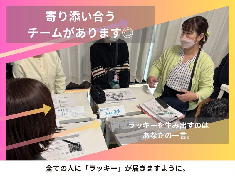 求めている人材 【資格や経験は問いません】 未経験の方も安心してスタートできる環境です。 業務の中で、パソコンを使用した事務作業がありますので、 Excel・Wordの基本操作ができる方を歓迎します。 利用者さん一人ひとりに寄り添い、 前向きにコミュニケーションを取れる方を求めています。 ▼こんな方は特に歓迎します ・裁縫が得意な方 または デザイン系が得意な方 ・SNS運用や発信に興味がある方 ・WEBデザインやクリエイティブな作業が好きな方 ・飲食店や接客業など、人と関わる仕事の経験を活かしたい方 「誰かの成長を支える仕事がしたい」 そんな想いをお持ちの方をお待ちしています。