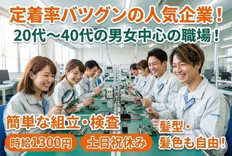 【10名の大募集】毎日の生活で使われている“身近な電子機器”に関わるお仕事♪ ◎髪型・髪色自由 ◎土日祝休み ◎未経験OK ◎20~40代男女活躍中