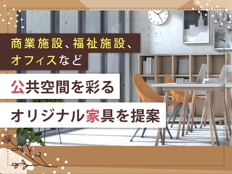 仕事内容 公共空間を彩る家具の提案営業! 一緒にKAWAJUNの顧客と共に考えながら進める 提案型営業に興味がある方を募集しています! 【パブリックファニチャーインターナショナル事業部】 商業施設、福祉施設、オフィスなど、 多くの人が行き交う空間で使用される家具の 企画・設計・デザインから 販売までを手がけています。 <主な仕事内容> ■提案型営業 同社オリジナルの公共空間向け 家具(椅子・テーブルなど)の提案営業を担当 ■提案先 施主、設計事務所、デザイナーなど 案件ごとに異なり、幅広い顧客層に対応。 社内のデザイナーチームによる バックアップ体制が整っており、 安心して提案活動に取り組めます。 「提案型の営業に挑戦したい」 「家具・インテリア・空間づくりに関わりたい」 そんな方をお待ちしています。 <提案例> ・自然光が入るカフェのように リラックスして過ごせる打合せスペース ・開放的なダイニングに大型テーブルを配置した、 コミュニケーションスペース …など! <入社後のサポート体制!> 業界知識や商品知識の専門知識は、 入社後(約3ヶ月間)のOJTや 日々の業務を通して身に付けられます。 「未経験からでも空間提案に関われるのが魅力」 という声も多数! KAWAJUNならではの提案力を 一緒に磨いていきませんか。 <KAWAJUNについて> 業歴51年。 オリジナリティと提案力を武器に、 常に新しい価値を創造し続ける エネルギッシュな企業です。 ■リテールソリューション事業 15万点に及ぶオリジナル製品で 流通小売業界に斬新な売場づくりを提案 ■グローバルハードウェア事業 デザイン性に優れた建築装飾金物で 住空間に彩りを添え、トップブランドとして確立 ■パブリックファニチャーインターナショナル事業 企画力を活かした家具・備品で 公共空間に新しい価値を創出