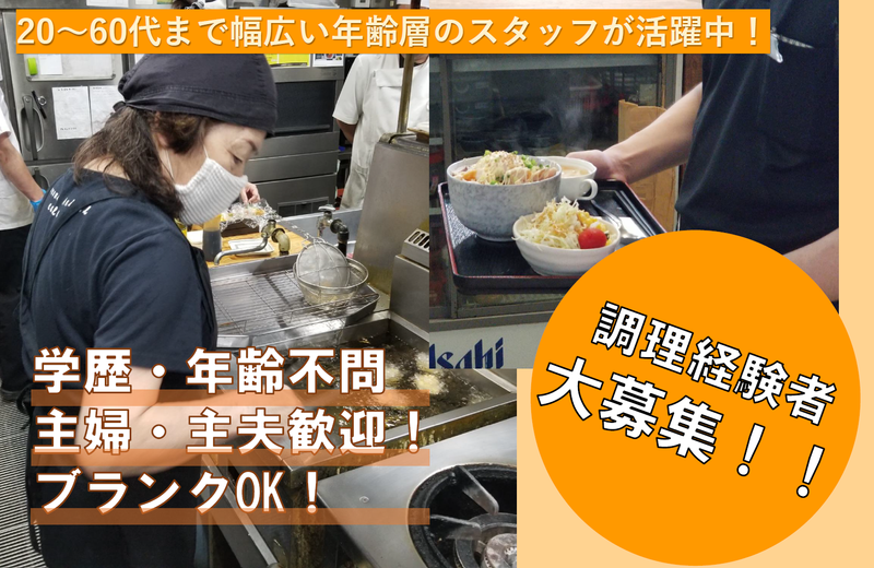 求めている人材 ⭐学歴不問 ⭐年齢不問 ⭐資格不問 ⭐経験者歓迎 ⭐飲食業界経験者歓迎 ⭐調理経験者歓迎 ⭐20代~60代の方が活躍中! ⭐主婦・主夫歓迎 ⭐ブランクOK ⭐U・I・Jターン歓迎!