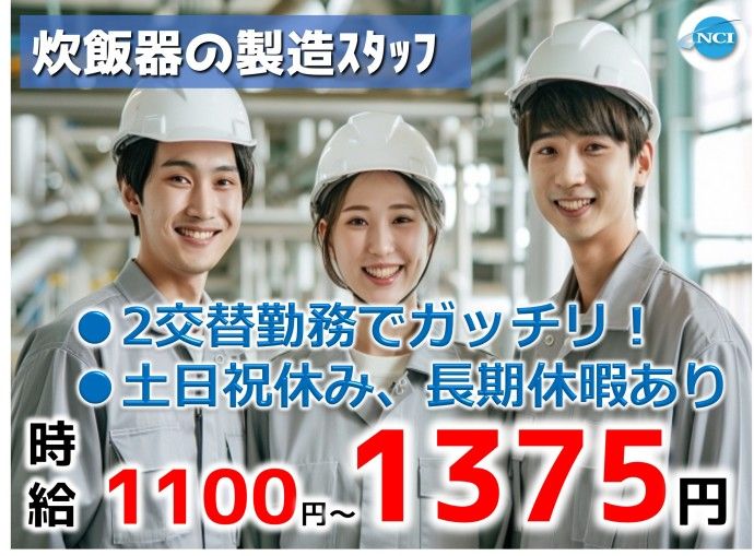 2交替勤務でガッチリ!炊飯器の釜の製造スタッフ★ミドル世代男女大活躍中♪