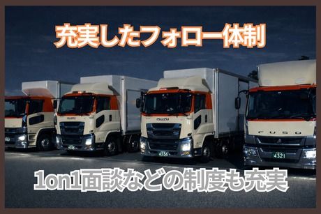 資格 【要】大型免許 ★大型免許は入社後に取得も可能! ※資格取得支援制度あり ※お気軽にご相談ください ◆経験不問 ◆学歴不問 ◆職歴不問 \ こんな方に向いています /  ̄ ̄ ̄ ̄ ̄ ̄ ̄ ̄ ̄ ̄ ̄ ̄ ̄ ̄ ̄ ・チームワークを大切にできる方! 仲間と協力し合って作業を進めていくため、お互いに助け合いながら楽しく働ける環境です☆ ・正確で丁寧に納品作業ができる方! 配送先の店舗では、商品を丁寧に届けることが大切なんです!! ・プライベートと仕事の両立したい方 日勤のみで、配送ルートが決まっているので、毎日夕方には帰宅! 毎日同じ仕事の流れ×安定したお給料で、安心して長期で働けます! ・未経験でも挑戦したい方! 経験がなくても心配いりません!先輩スタッフがサポートしますので、未経験からスタートして安心して学べます☆ ・長期的なキャリア形成を望む方! 入社後に大型免許やフォークリフトリフト免許、運行管理者などの資格が取得可能! (資格取得支援あり) 将来的に運行管理者などの管理スタッフも目指せます!