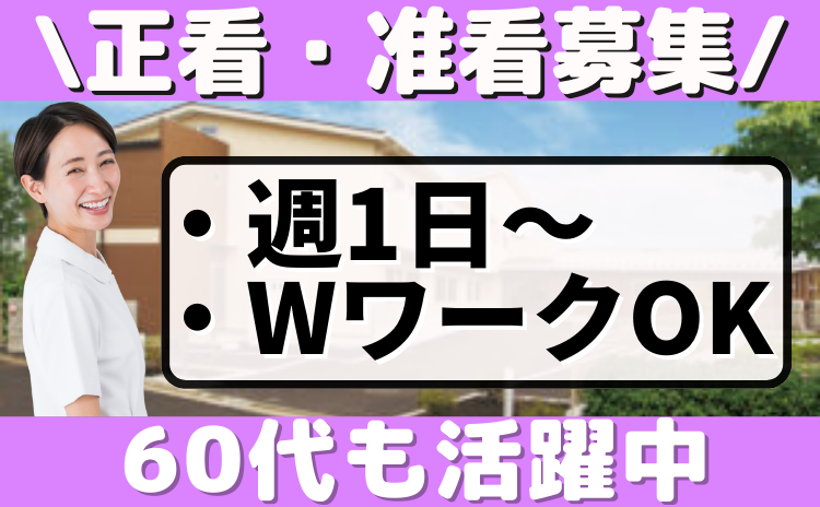 ■週1日~OK ■残業なし ■シニア世代も活躍中 ■正看・准看の同時募集 ■定年なし!60代も活躍中
