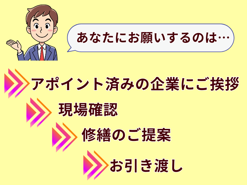 仕事内容 本求人は50歳未満の方が対象となります(長期勤続によるキャリア形成の為:例外事由3号イ) ◆事業拡大に伴い、 将来の中核メンバーとして活躍いただく法人営業を募集。 20~40代が中心となり、チームで案件を動かしています。 ◆営業/職人/現場管理いずれかで1年以上の実務経験がある方優遇! 【仕事内容】 アパートやマンション、工場、ビル、医療施設、大型店舗など 法人のお客様が所有・管理する建物を対象とした営業業務です。 「法人営業」と聞くと、 ・自分でテレアポをしなければいけない ・新規開拓で断られ続ける そんなイメージを持たれる方も多いかもしれません。 当社では、その心配はありません。 <具体的な業務内容> ① 訪問挨拶 訪問先は、別のテレアポ専門業者が事前にアポイントを取得したお客様のみです。 そのため、 ・自分で電話をかける ・飛び込みで断られる といったことは一切ありません。 「お約束の上での訪問」なので、落ち着いてお話ができます。 ② 現場調査 お客様と一緒に建物の状況を確認し、 気になっている点やお困りごとをヒアリングします。 専門的な部分は、先輩や技術スタッフがしっかりフォローします。 ③ 施工管理・現場調整 工事が始まったら、進捗確認やお客様との連絡役を担当します。 職人・協力会社との橋渡し役となり、現場をサポートします。 ④ お引渡し 工事完了後、お客様へ最終確認を行いお引渡し 「次もお願いしたい」と言っていただける関係づくりを大切にしています 【この仕事の特徴】 ・案件単価が大きく、やりがいのある仕事 ・アパート・マンション・工場など、長期的なお付き合いになる法人案件が中心 ・現場と営業の距離が近く、チームで進める仕事 ・経験や判断力が、そのまま評価につながる環境です 【入社後の流れ】 入社後は、先輩社員と同行しながら 法人営業の流れや当社の仕事の進め方を学んでいただきます。 ・最初は既存案件のサポート中心 ・半年〜1年を目安に、徐々に担当案件を持っていただくイメージ ・マニュアルやフォロー体制も整っているため安心です 【キャリアアップ・評価制度】 当社は成果・姿勢・経験をしっかり評価する制度を整えています。 ・インセンティブあり ・経験や実績に応じて昇給・昇格 ・将来的にはリーダー・管理職へのステップアップも可能 「現場経験を営業に活かしたい」 「次は管理側として成長したい」 そんなキャリアチェンジも応援します。 【給与】 月給 291,000円~600,000円 (基本給+インセンティブ+残業手当+各種手当) ※資格・経験・年齢を考慮します 【年収例】※年収は各種手当・賞与を含めたイメージとなります。 入社1年目(未経験営業職20代男性):360万円~ 入社3年目(未経験営業職30代男性):500万円~ 入社7年目(店長職30代男性):720万円~ 【最後に】 法人営業だからといって、 特別な営業トークや強引さは必要ありません。 これまでの経験を、少し違う形で活かす仕事です。 あなたのペースで、ぜひ一緒に取り組んでいきましょう。 「今の経験を活かして、より安定した環境で働きたい」 そんな想いをお持ちの方に、無理なく始めていただける職場です。 ============================== ■社名:株式会社⻤澤塗装店(おにざわとそうてん) ■代表者:⻤澤 ⻯治(おにざわ りゅうじ) ■創業:1948年 ■従業員数:18名 (営業6名/事務6名/パート2名/職人4名) 男⼥⽐:5:5 ■事業内容: 外壁塗装・屋根塗装・屋上防水・その他リフォーム工事全般 また、「大規模修繕の鬼澤」 という屋号でも活動しており、 アパート・マンション・工場・ビル・医療施設・大型店舗などを対象とした 法人向けの大規模修繕・改修工事を数多く手がけています。 今回募集している法人営業職は、 この 「大規模修繕の鬼澤」 としての業務が中心となり、 建物の調査から工事完了までを一貫してサポートする仕事です。 ■施工エリア: 宮城県全域および、 山形県の一部(宮城県近隣エリア) ■会社の魅力: 弊社は塗装工事業者として宮城県で唯一、 みやぎ生協(COOP)と提携している会社です。 さらに、入札参加資格を保有しており、公共工事の実績もあります。 長年にわたり積み重ねてきた実績と信頼により、 アパマン・工場などの法人案件も多く任されていることが、 弊社の大きな強みの一つです。 ============================== 【公式HP】 https://shuzen-onizawa.com/ ============================== ご応募頂いた方には担当者よりTELまたはメールでご連絡をいたします。 お電話もしくは応募フォームにてお気軽にご連絡ください!