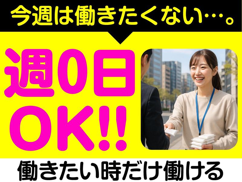 仕事内容 ▼▽▼▽▼▽▼▽▼▽▼▽▼▽▼▽▼▽▼ (*'▽')<1日2h~スキマ時間で働ける♪ <全て駅チカ!>週0日も長期間も勤務OK ✨ノルマ無し ✨短期OK ✨日払い可能 ✨履歴書不要 ✨選べる勤務地多数あり♪ ▲△▲△▲△▲△▲△▲△▲△▲△▲△▲ 駅前やお店の前でチラシ配りや ティッシュ配りのお仕事をお任せします◎ 配布中の水分補給OK! 難しいスキル不要の簡単な街頭配布♪ ≪新人さん限定≫ ☆ボーナスキャンペーン実施中☆ 【配布するもの】 スポーツクラブ、買取専門店、 音楽教室、パソコン教室、 飲食店等のポケットティッシュやチラシ配布 ✨未経験者の方でも安心スタート!  ̄ ̄ ̄ ̄ ̄ ̄ ̄ ̄ ̄ ̄ ̄ ̄ ̄ ̄ ̄ ̄ ̄ ̄ ̄ まずは丁寧にお仕事の流れなどを ご説明するので、ご安心ください。 1人で不安な方はお友達と一緒に応募もOK♪ 一度登録すれば好きな日に働けます! 1ヶ月に1回だけの勤務も◎ ✨勤務希望の前日までにLINEでシフト提出!  ̄ ̄ ̄ ̄ ̄ ̄ ̄ ̄ ̄ ̄ ̄ ̄ ̄ ̄ ̄ ̄ ̄ ̄ ̄ 「来週はテストがあるから週0日」 「旅行前にガッツリ働きたい」 「推し活の合間にサクッと」など、 1日2h~細かいスケジュール設定が可能。 働き方の希望は最大限考慮します♪ ✨新宿駅スグ!登録説明会毎日開催中!  ̄ ̄ ̄ ̄ ̄ ̄ ̄ ̄ ̄ ̄ ̄ ̄ ̄ ̄ ̄ ̄ ̄ ̄ ̄ 登録説明会は「新宿駅」で毎日開催♪ 忙しくて新宿登録説明会に来られない… という方や、遠方にお住いの方は 10~15分のビデオ通話でサクッと登録完了◎ 即日勤務も大歓迎です!! ✨おすすめポイント ✅ ノルマなしでストレスフリー ✅ 週0~OKの自由シフト ✅ 単発もOK!空いてる日にサクッと ✅ 友だちと一緒に応募OK ✅ 履歴書不要・即日スタートOK ✅ LINEでカンタンシフト提出 ✅ 日払いOKで即お給料GET ✅ 茶髪OK(男性はこげ茶) ✅ 派手すぎなければネイルOK♪