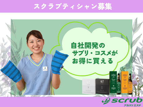 お仕事内容 ◆スクラブエステサロンでの施術・接客を担当していただきます。 具体的には… ◇予約受付/ご案内 ◇カウンセリング ◇ご要望に応じた施術 ・スクラブ(アカスリ) ・アロマリンパトリートメント ・海藻ジェルトリートメント ・フェイストリートメント ・顔ピーリング ・顔パック ・ヘッドリフレ ・デコルテリンパ *未経験の方でも安心の研修制度* 業界屈指の研修専門施設で、『結果の出せる技術』を丁寧にレクチャーします。 験者の方はこれまでのスキルを更に磨くことができるため、スキルの幅が広がります! 経験豊富な講師陣が、熱意を持ってイチから全て伝授します!