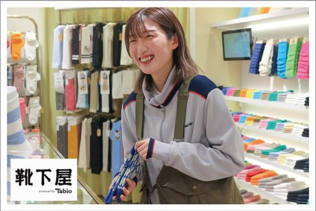 仕事内容 お仕事内容 『靴下屋』のいずれかのブランドの販売スタッフとして、お客様のファッションに合った商品・コーディネートを提案 高品質で機能的、しかもファッション性にあふれた品揃えで、 “足元からワンランク上のオシャレを”楽しむ多くのお客様から支持を集めている靴下ブランド。 接客・販売などのお仕事をお任せします。 【1日のスケジュールと業務内容】 ※ 早番の場合 出社 オープン準備 開店 お客様のお迎え 接客、レジ対応、入荷した商品をお店に並べる 休憩(1) 接客、レジ対応 休憩(2) 接客、レジ対応、レジ金点検、売場変更等 退勤 ◆遅番は閉店作業が追加されます。 ◆スケジュールは店舗や時期によって変更の可能性があります。 Made in Japan」の靴下 「提案型接客」でお客様にHAPPYを 創業以来、こだわり続けている「Made in Japan」の品質。素材を知り尽くした職人の手によって生み出される靴下は、独自の履き心地を実現しています。 お客様のファッションをワンランクアップさせたり、足元のお悩みを解消させるような靴下やタイツをご提案。 お客様と楽しみながらの商品提案が、私たちの接客スタイルです。 あなたの”好き”を見つけられる環境 靴下で+αのワンランク上のオシャレをお客様へ提案することがあなたのミッション。 時にはお客様のお悩みを解決し、お喜びいただけた時は、やりがいも感じます! 仕事を通し、あなたの「好き」を追求できる環境です。 商品を傷つける恐れのないデザインであれば、ネイルもOKです。 おしゃれを楽しみながらご勤務いただけます。 こんな方におすすめ 【20~30代の女性活躍中!】 ■靴下が大好きな方、おしゃれに興味がある方、おしゃれを楽しみながら働きたい方 ■居心地の良い環境で長く働きたい方 ※ほとんどの方に契約を更新して長期勤務していただいております♪ ■未経験者歓迎◎ 接客経験のある方ももちろん大歓迎!!