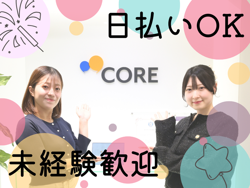 選考プロセス 最初の面談はオンラインからでOK! 履歴書不要&服装自由で気軽にできる! ※現在は研修制度やオリエンテーションなども ほぼオンラインで開催中! <スマホでサクッと応募OK> 気軽に応募できちゃうのがラクチン ≪お仕事決定までの流れ≫ WEBよりご応募⇒弊社よりメール・SMSにてご連絡 ⇒お電話でのお仕事紹介 ⇒オンラインまたはご来社での面談(選択制) ⇒お仕事スタート! 【登録地】 株式会社コアスタッフィング 本社 所在地:東京都新宿区西新宿3-2-11 新宿三井ビルディング2号館7階 電話番号:0120-731-202