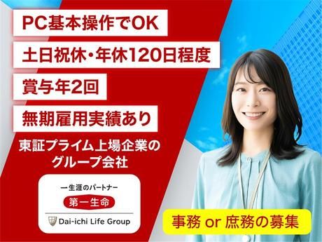 【障害者採用】第一生命保険/土日祝休み!賞与年2回◎大手生命保険会社で一般事務@下関