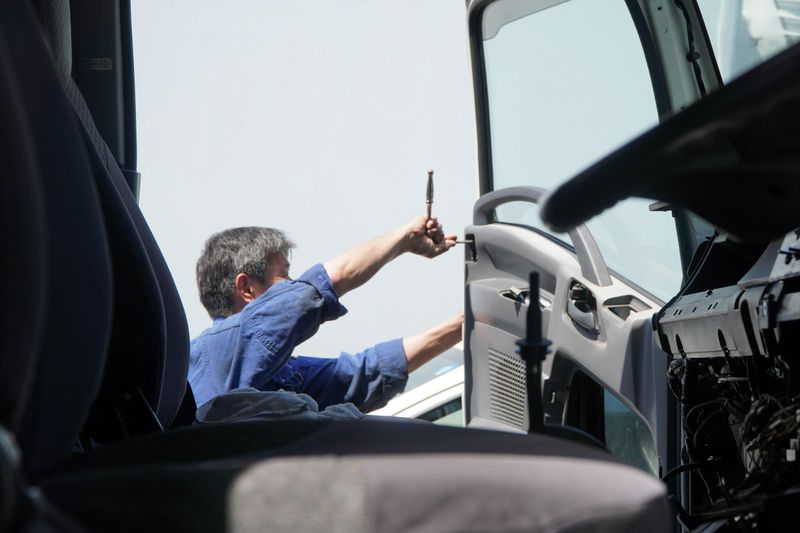 職場環境 チームで声をかけあいながら、仲間と、 チームワークを育みながらおこないます。 働く車の安全を守ることで、 人々の生活を守ることにも繋がる。 やりがいの大きい仕事です。