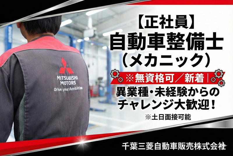 仕事内容 ╭━━━━━━╮ ✨お仕事内容✨ ╰━━━━━━╯ 三菱ブランドの新車・中古車の点検をはじめ、車検・修理の対応をお任せします。カーライフアドバイザーとも連携を取りながら、お客様に寄り添った対応をお願いします。 ≪具体的には…≫ ●新車・中古車の点検 ●車検・点検・修理の対応・拠点での連携 など ≪配属先の編成≫ 職場は明るく、相談しやすい雰囲気が自慢。 チームで協力し合いながら、一人ひとりのお客様に寄り添った対応を心がけています。 先輩スタッフが丁寧にサポートするので、分からないことや不安なこともすぐに相談できます。 ╭━━━━━━━━╮ ✨教育・研修制度✨ ╰━━━━━━━━╯ ●未経験者も安心!ゼロからの成長をサポートする充実した教育・研修制度があります。 経験者の方はもちろん、「もっと成長したい」「手に職をつけたい」という方にもピッタリです。 資格取得補助制度もあり、教育体制も充実しています。