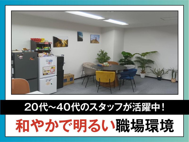 職場環境 20代後半から40代前半まで、実務の知見を活かしながら幅広い世代のメンバーが業務に取り組んでいます。フォロー体制が整っており、不明点はすぐに周囲へ確認できるため、新メンバーも馴染みやすい環境です*。 喫煙所:喫煙所あり(屋内) 各勤務先ビル内