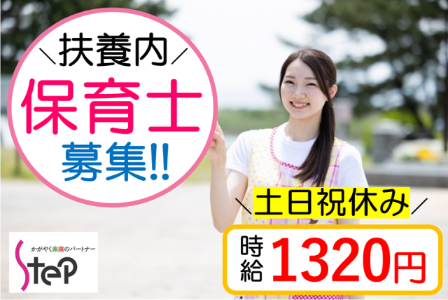 ◆月収目安6万円◆ 扶養内歓迎 / 平日のみ勤務♪ / 朝だけ短時間☆ / 残業なし / 固定勤務 株式会社ステップグランドスタッフ 認定こども園の保育士 . ■案件NO,15657■お電話で案件番号をお伝えください! *:;;;:*:;;;:**:;;;:*:;;;:**:;;;:*:;;;:**:;;;:*:;;;:**:;;;:* 認定こども園の保育士の求人案件です♪ *:;;;:*:;;;:**:;;;:*:;;;:**:;;;:*:;;;:**:;;;:*:;;;:**:;;;:* \働きやすさ!/ ◆残業、持ち帰りなし! ◆平日のみ、土日祝休み♪ ◆扶養内のお仕事 ◆1日3hだけ ◆WワークOK ブランクがある方もOK! 午後からはプライベートの時間も しっかりとることができます! Wワークで働きたい方も歓迎☆ ________________ 【こんな園さんです】 ☆定員100名の認定こども園 ☆低月齢児が通う分園と、本園があります ☆こじんまりとしたかわいい園さん \教育、保育目標/ 1、健康で元気な子ども 2、思いやりのある子ども 3、感性豊かな子ども 4、自分の思いを素直に伝えられる子ども ★こんな保育をしています★ ・「はだし保育」を取り入れています ・体育、英語、絵画、音楽など 様々な情操教育を行っています ・野菜栽培や調理体験など 「食育」に力を入れています ________________ \ステップのここが嬉しい/ 園への見学時も同行します☆ 働く上で園へ伝えておきたいこと、 時間の相談などなど ご自身では伝えにくいことも コーディネーターが伝えますので 見学時も安心です♪ 事前に園の雰囲気を知ってから 入職に繋げることができるのも 嬉しいポイント! 1人で悩まなくても大丈夫! 保育士としての経験がある コーディネーターが あなたのお仕事開始まで 精一杯サポートします! もちろん、お仕事開始後も 継続的にサポートしますので ご安心ください☆ ・・・・・・・・・・・・・・ \希望登録/も受付中! 希望の条件で働けるチャンス☆ 通勤時間や、勤務時間、勤務曜日など ご希望をお聞かせいただいた上で あなたにぴったりの園さんを ご提案させていただきます♪ .