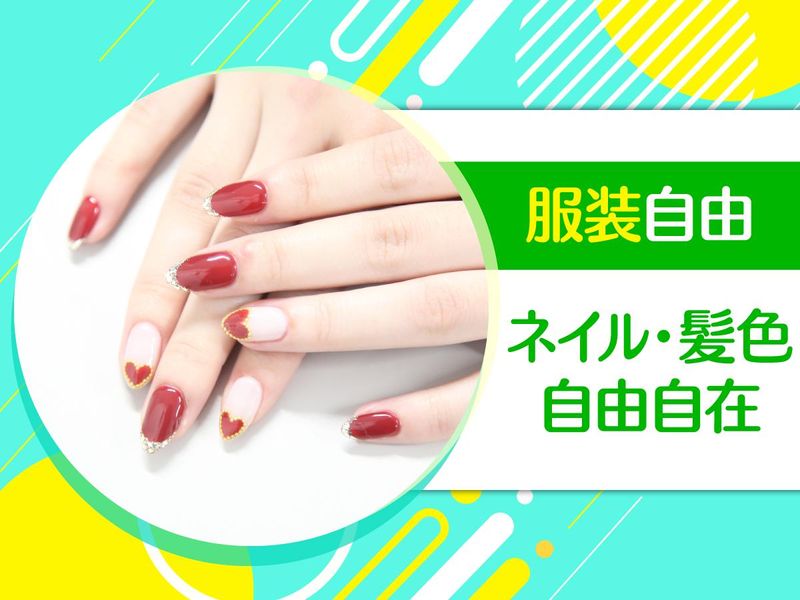 【保険制度】 雇用保険、労災保険、健康保険、厚生年金 待遇・福利厚生 【福利厚生】 ・社会保険完備 ・交通費規定支給 ・日払いOK(規定あり) ・髪型、ネイル、ピアス、服装自由(規定あり) ・履歴書不要 ・お友達同士の応募もOK!