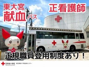 募集背景 埼玉募集求人です! 仕事内容 ★命をつなぐ血液事業でやりがい◎ ★日勤のみ! ★正規職員登用制度あり(令和6年度登用実績7名) ★安心安定の赤十字 ★20代~30代の女性を中心に活躍中♪ ★書類選考後、職場見学を実施中! 【献血バスにおける一日の流れ(一台につき看護師3~4名勤務)】 1 埼玉県赤十字血液センター所管の施設(さいたま市見沼区、日高市、熊谷市)から出発準備 2 献血協力団体会場へ移動 3 献血者受け入れ (採血等業務) 4 献血受付終了 (片付け等業務) 5 所管の施設帰所、片付け等 同日中に複数会場をまわる場合は2~4を2,3回繰り返し行います。 【献血の流れ】 受付→問診→採血前検査→本採血→休憩 看護師は、主に採血前検査と本採血にかかわります。 採血には電子カルテや専用の採血装置を使用します。 ━━━━━━━━ ♪先輩看護師の声♪ ━v━━━━━━ 優しいスタッフが多く、穏やかな気持ちで働きやすい♪ 難しい血管も自分の工夫次第でうまく穿刺できると達成感がある! 夜勤がないのでワークライフバランスも充実◎ 血液事業を支えるやりがいを感じる! 実際に血液センターで働く看護師の模様、メッセージを収録した動画があります。 ☆職場ナビ動画をご覧ください☆