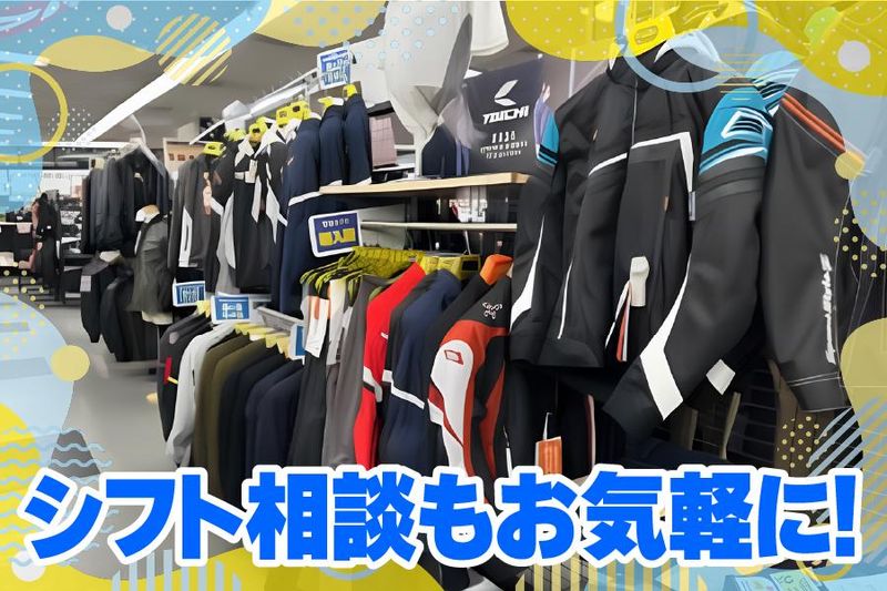 仕事内容 ◆未経験大歓迎!知識・経歴不問! ◆シフト・お休み相談はお気軽に◎ ◆広い無料駐車場あります♪ 【仕事内容】 バイク用品を取り扱うショップで、 販売・接客業務をお願いします。 扱う商品はヘルメット、ウェア、 ツーリンググッズが中心です。 【具体的には】 ・接客 ・品出し ・商品陳列 ・レジ打ち <未経験の方も大歓迎です!> 商品知識は一切不要で、 一から丁寧にお教えします。 分からないことがあれば、 すぐに先輩が対応します◎ <家庭・学業との両立も◎> 勤務日時の相談もお気軽に! 家事育児や授業やテストも 考慮してシフト調整致します。