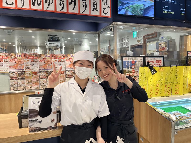 仕事内容 お寿司屋さんのホール&キッチン🍣 おいしいお寿司に囲まれて働きませんか? 他の寿司店にはない「すし処深廣」だけの魅力があります♪ おすすめポイント ✦シフト自由!週1日~相談可 ✦未経験OK!初バイト大歓迎! ✦お友達と一緒に応募もOK 「学校帰りに」「家事の合間に」「ガッツリフルタイムで」など、 ライフスタイルに合わせやすい環境です。 ららぽーと内の好立地! お仕事前後にお買い物や映画も楽しめます。 雨の日も濡れずに通勤できるのが嬉しいポイント。 \✨豪華なまかないアリ✨/ 市場直送の絶品まかない! 鮮魚商直営だからこそ。美味しいお寿司や海鮮丼 うどん・ケーキなども食べられちゃう! これを楽しみに頑張るスタッフも多数! ▽仕事内容・∴・∵・∴・∵・∴・ 【 ホールSTAFF 】 ・お客様を席までご案内 ・レジでのお会計 ・タッチパネル操作の説明 ・お客様のお見送り など シンプルな接客のみ!料理の提供や キッチンとの連携もありません☆ タッチパネル式だから、 オーダー間違いなどの心配ナシ♪ レジ操作も簡単です◎ ・∴・∵・∴・∵・∴・∵・・∴・ 【 キッチンSTAFF 】 ・ドリンク作り ・お寿司のネタ準備 ・食器洗い、片付け ・軍艦やおつまみなどの盛付 など 調理のスキルは不要です☆ 包丁いらず&火を使う調理もナシ◎ シャリは全自動マシンで握りもナシ♪ キッチン未経験でも 安心してスタートできますよ☆ ・∴・∵・∴・∵・∴・∵・・∴・ 創業明治38年 中枢都市の大卸としては最古といっても過言ではない老舗問屋「深廣」 リーズナブルながら鮮度、品質共に申し分ない海鮮が自慢。 この度、創業120年を経て初めて大型すし店を開店しました。