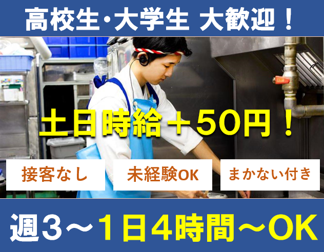 【土日時給+50円】高校生~主婦さんまで活躍中!まかない付き