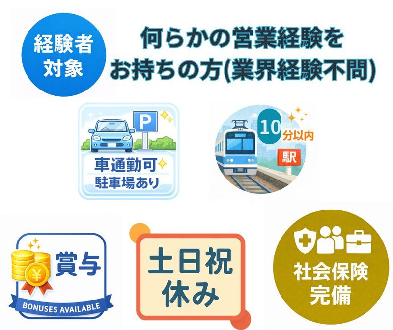 ■何らかの営業のご経験をお持ちの方 ◎業界未経験の方は1~3か月研修あり土日祝休み