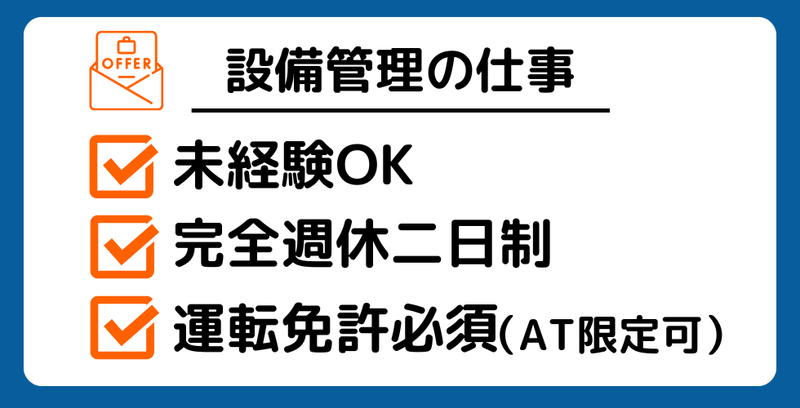 仕事の内容 【異業種からの転職者活躍中!】 「ノルマに追われることに疲れた…」 「働き方を見直したい」 『だけど、人と関わる仕事は続けたい』 そんなあなたにピッタリな、「ビル管理」のお仕事です。 □■未経験でも安心な理由■□  ̄ ̄ ̄ ̄ ̄ ̄ ̄ ̄ ̄ ̄ ̄ ̄ ̄ ・入社後は3ヶ月の研修あり。 ・まずは先輩と一緒に建物を回るところからスタート! ・丁寧に育てる社風があるから、「初めての転職」でも大丈夫です。 □■働きやすさを追求■□  ̄ ̄ ̄ ̄ ̄ ̄ ̄ ̄ ̄ ̄ ̄ ✔ 完全週休二日制(土日祝休み) ✔ 未経験から月給29万円以上 ✔ 残業代は1分単位で支給 ✔ 充実の福利厚生 (交通費全額支給、扶養手当など) ✔ 資格取得支援あり (国家資格の取得もサポート) ✔ 転勤ナシ 【お仕事詳細】 ビル・商業施設の管理スタッフとして、建物の“安心”を守る仕事です。 ・現場の管理業務全般 ・担当建物の巡回、点検 ・軽微な修繕の手配、立ち合い ・協力会社やオーナー様との打ち合わせ、報告連絡 ※大規模な工事は専門業者が担当。 だから、専門知識がなくても始められます! ※直行直帰OK!(社有車での通勤OK) 仕事のやりがい  ̄ ̄ ̄ ̄ ̄ ̄ ̄ 緊急対応に素早く動いたとき。 プロジェクトの現場をやり遂げたとき。 お客様や仲間からの「助かりました!」「ありがとう!」の声が、大きなやりがいにつながります。 裏方だけど、確実に“誰かの支え”になっていると実感できる。そんな仕事です。 この仕事に向いている人  ̄ ̄ ̄ ̄ ̄ ̄ ̄ ̄ ̄ ̄ ̄ ◎人とのやり取りに抵抗がない ◎誰かのために動くことが好き ◎指示されるのを待つより、自ら動くタイプ ◎感謝されると「もっと頑張ろう」と思える 未経験からこの業界に転職したスタッフも活躍しています! とくに、販売や接客など「人と関わる仕事」出身の方は、コミュニケーション力を活かして早期に活躍できますよ。 \あなたの“変わりたい”を応援/ 長く続けられる仕事、 ちゃんと休める働き方、 人と関わりながら感謝される日々。 ビル管理という仕事を通して、 そんな働き方を実現してみませんか? まずは、話を聞いてみるだけでも構いません。 あなたからのご応募をお待ちしています。 ✅ もっと詳しく知りたい方へ!  ̄ ̄ ̄ ̄ ̄ ̄ ̄ ̄ ̄ ̄ ̄ ̄ ̄ ̄ ̄ 会社の雰囲気や取り組みについては、 公式ホームページでも紹介しています。 気になる方は、ぜひ「株式会社JM」で検索してみてください。