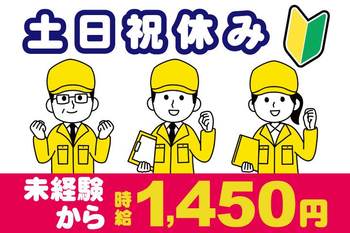 仕事内容 医薬部外品製造会社で夜勤専属のお仕事! 未経験歓迎の簡単作業! 土日祝休みでプライベートもバッチリ充実! 20代・30代・40代・50代など若手から中高年活躍中! ▼この募集のポイント 〇夜勤専属 〇時給1,450円 〇月収31万円 〇土日祝休み 〇未経験歓迎 〇簡単作業 〇男性活躍中 〇食堂完備 〇駅チカ徒歩圏内 ▼医薬品の検査、印字・ラベルの確認、包装・梱包 歯磨き剤・化粧品の製造に伴う各種業務を担当していただきます (1)ラインに流れてきた製品の目視検査(傷や印字チェック等) (2)検査に合格した製品の箱詰めや包装 (3)機械を操作して容器に製品を充填 (4)その他付随業務 ▼キレイな作業環境で快適 空調の効いたクリーンルームでのお仕事です。 商品を作る上で大切な工程ですが、むずかしい作業はなく、 しっかりとした研修や安全教育があるから安心してスタート可能! 職場には社員食堂も完備!駅から徒歩圏内だから電車通勤でラクラク! 車通勤もOKです。 ▼土日祝休みの週休2日制! 土日祝休みなので無理なく続けやすい勤務です。 プライベートを重視したい方にもおススメ! すぐ働きたい方も歓迎!最短1~2週間で勤務スタートOKです。 長期安定を目指すあなたにもオススメ! 他にも、あなたにピッタリなお仕事がきっと見つかる! まずはお気軽に採用担当へご相談ください。