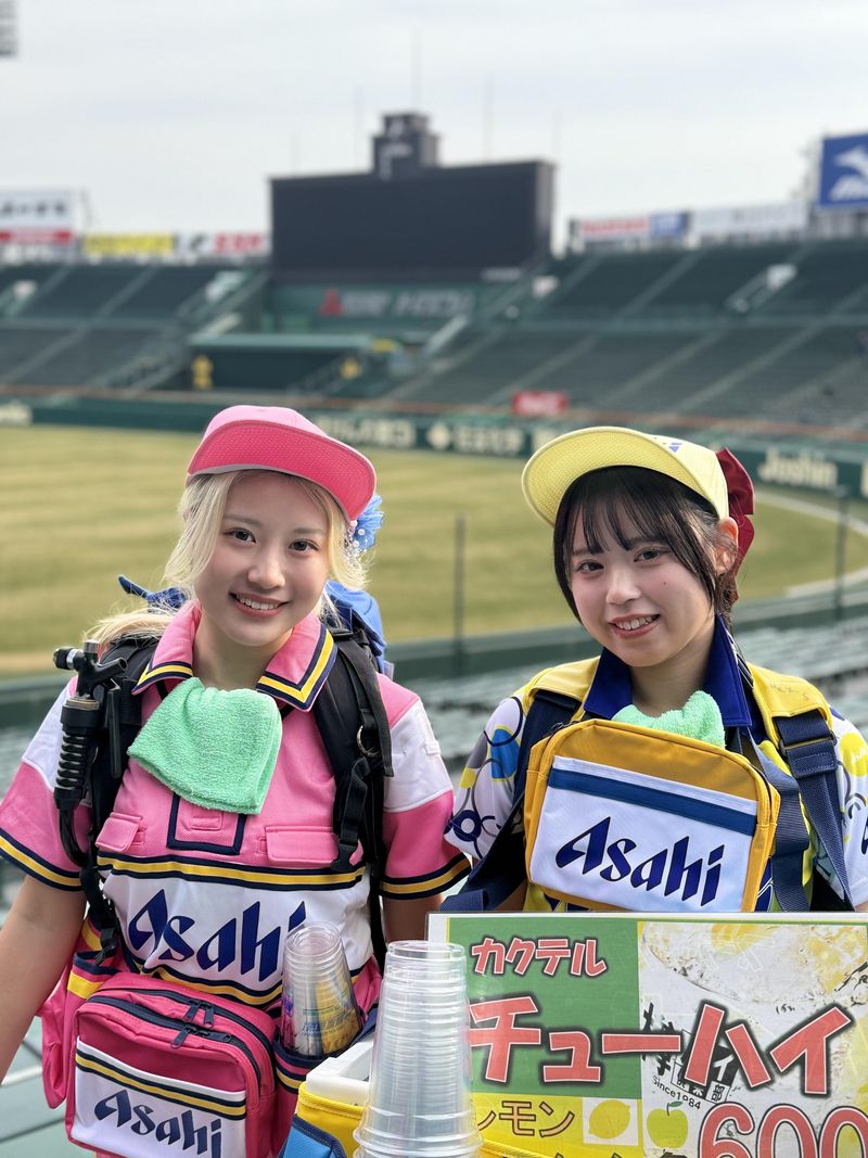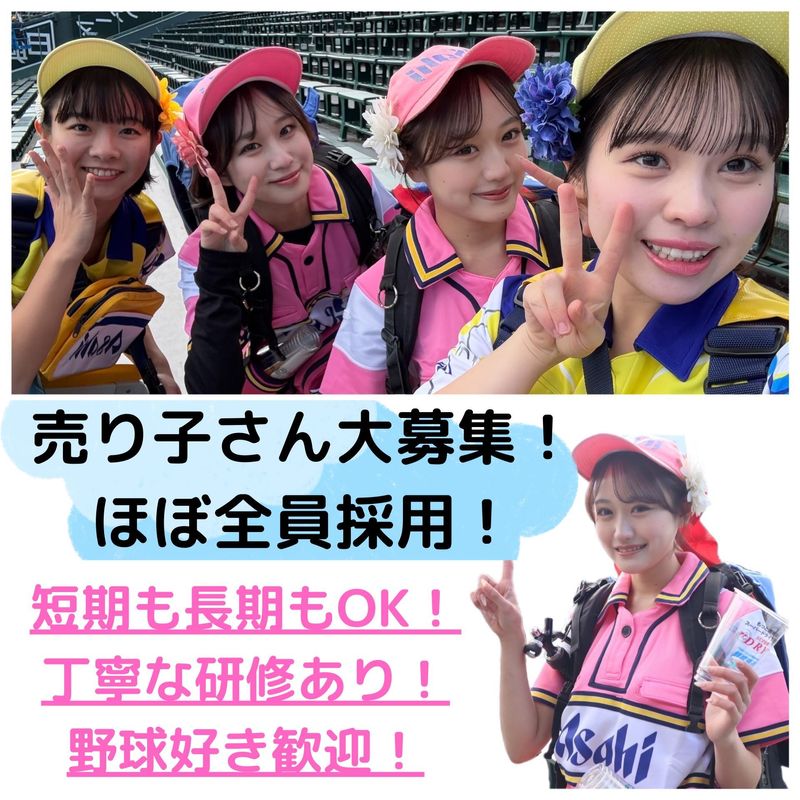 仕事内容 ✨∴..∴..∴..∴..∴..∴..∴..∴..∴..∴..∴✨ 楽しいだけじゃない、 その経験が将来の価値になる ✨∴..∴..∴..∴..∴..∴..∴..∴..∴..∴..∴✨ ⭐甲子園を盛り上げる華である「売り子さん」募集 正直に言います。この仕事、結構ハードなんです。 約15kgのタンクを背負っての、階段の上り下りはまるで筋トレ。 しかも、歩きまわるだけでなく お客様とのコミュニケーション どうすれば買ってもらえるかのマーケティング思考など 考えることも大事になります。 だからこそ、売り切った時の「達成感」や「経験」は 他のバイトでは絶対に得られませんし、 この先の就活やビジネスの場において絶対通用するものです。 もちろん、成果にはしっかり給与で還元! 売った分だけ稼げる環境です! 試合日だけの勤務なので自分の都合に合わせて働けるのも魅力 「就活で活かせるバイトをしたい」 「自分の努力が数字になるのが好き」 そんなあなたにこそ、挑戦してほしい仕事です! もちろん、 「野球が好き」「人と話すのが好き」という方も大歓迎! 「楽しんで働けるからこそ、長く続けられている!」 という先輩も まずは短期からでもOK! 自分を試してみませんか? ┏━━━━━━━━┓ ◆ お仕事内容 ◆ ┗━━━━━━━━┛ 阪神甲子園球場のスタンド内をまわり お客様へ生ビール・チューハイ等の 販売をお願いします。 ✅:具体的な流れ  ̄ ̄ ̄ ̄ ̄ ̄ ̄ ̄ 基地でタンクにドリンクを補充 ▼ 担当エリアへ出発! 「いかがですかー!」と笑顔でアピール ▼ お客様からのオーダーに対応 注ぎ方のコツは研修で伝授します♪ ▼ タンクが空になったら基地へ戻る これを繰り返します! ✅:ここがポイント  ̄ ̄ ̄ ̄ ̄ ̄ ̄ ̄ 甲子園球場という日本でも屈指の球場 お客様と一緒に盛り上がれるのがこの仕事の最大の醍醐味です。 今年度より定期的な研修や勉強会を通じて より楽しく仕事をできるような体制の強化を予定♪ 休憩室は冷房完備ですし、 冷感タオル利用やクールバンドなど 暑さ対策グッズも着用OKで サポート体制も万全! ☆∴..∴..∴..∴..∴..∴..∴..∴..∴..∴..∴☆