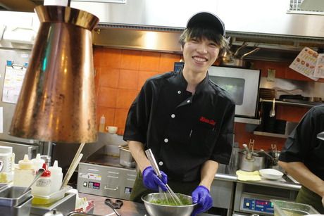 職場環境 【従業員構成】 □■チームワークが自慢のお店!■□ 20代を中心に、フリーター・大学生・主婦・主夫などたくさんの仲間が活躍しています。 店長やチーフを始めとした社員スタッフとの距離も近くて働きやすい◎ 「居心地がいいから」と、長く働く先輩も多いです。 □■「キッチンからホールへ」「ホールからキッチンへ」のジョブチェンジも可能!■□ 【職場の雰囲気】 にぎやかな職場 個性が活かせる 立ち仕事 アットホーム お客様との対話は多い 初心者活躍中 自分の都合に合わせやすい 知識、経験不要